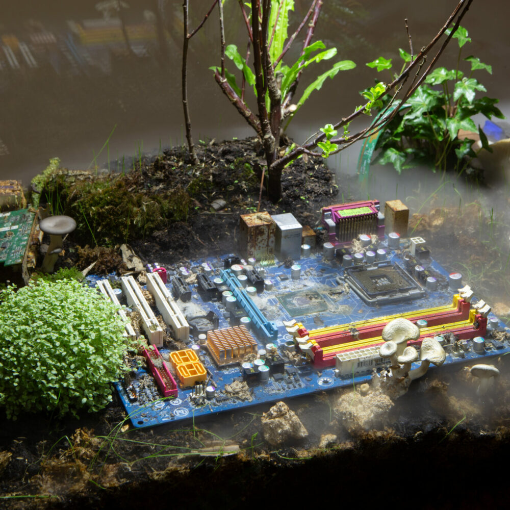 Le casque d’écoute augmenté de Christina Kubisch sonifie les ondes électromagnétiques qui le traversent, qu’elles soient d’origine humaine (wi-fi, téléphone portable, champs électriques, systèmes radars, éclairage public, etc.) ou non-humaines (ondes provenant de l’ionosphère, comme celle qu’émettent les orages).
