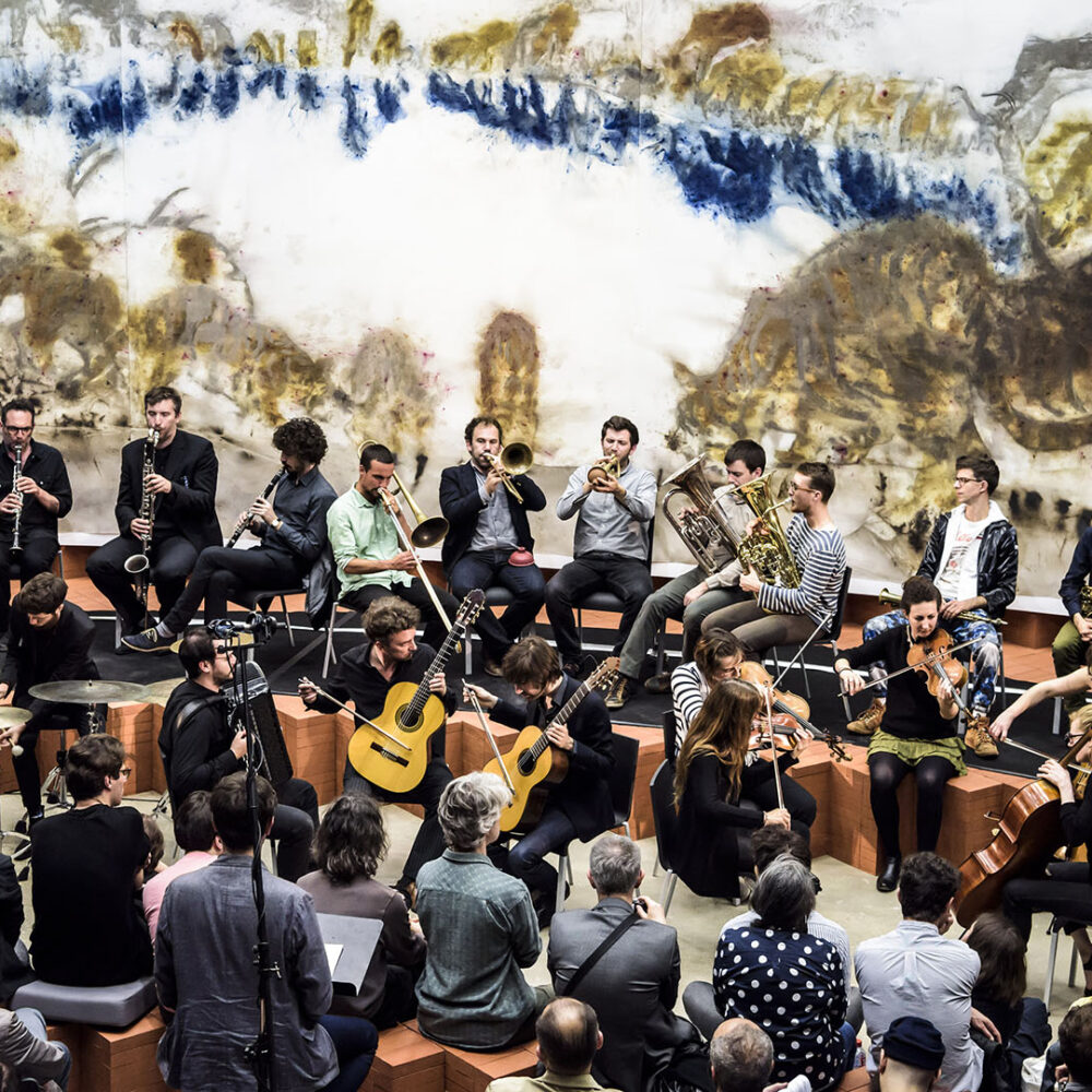 La liste des ensembles/orchestres nés ces dix dernières années est longue. Évoquons ici le Un, collectif d’improvisateurs.trices installé à Bordeaux et initié par le contrebassiste David Chiesa, qui se définit comme « une société d’improvisation » : « Le UN improvise, invente des dispositifs de jeu, travaille avec l’image cinématographique » (note d’intention de l’ensemble). Un moment tenté par l’exploration de l’écrit, je crois que l’ensemble s’est resserré sur les situations d’improvisation.