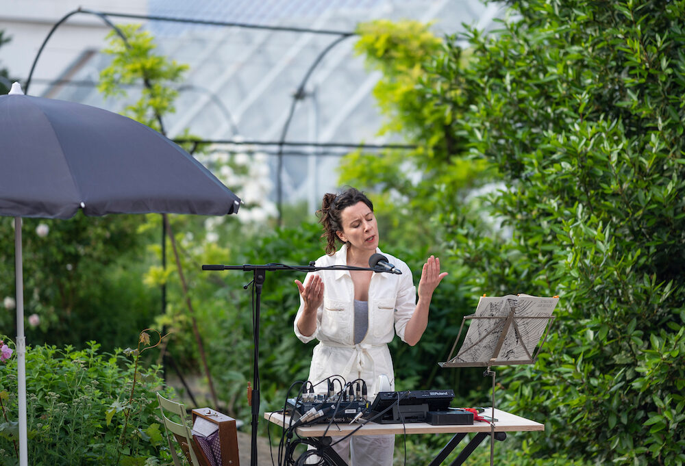 Au fil de l’opéra, les voix parlent, les voix chantent, mais elles ne sont pas seules. Au timbre des interprètes s’ajoutent le field recording de Myriam Pruvot, protagoniste à part entière, composé tantôt de bruissements qui évoquent une faune mystérieuse, tantôt d’inquiétants messages d’alerte aux allures de science-fiction, où la technologie semble à la limite de la saturation, le tout formant un univers aux multiples dimensions sono-temporelles. Les interprètes se retrouvent, assis en cercle autour d’un microphone : c’est une veillée radiophonique dans la pénombre. Public et interprètes participent à une même expérience des sens : la disparition du voir.