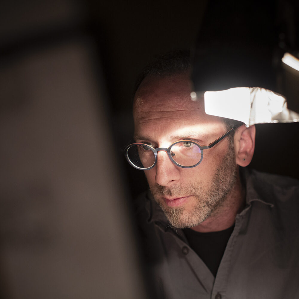 Compositeur, interprète et artiste sonore, Loïc Guénin (né en 1976) aime susciter les échanges et le travail collaboratif avec ses interprètes dans une approche qui mêle recherche et expérimentation, installation sonore et performance. Son désir de création et d’exploration l’a conduit à inventer, à côté des partitions traditionnelles, d’autres supports de lectures, planches graphiques et grilles d’interprétation situées entre l’écrit et le non-écrit, un entre-deux qu’il tente, pour nous, de définir.