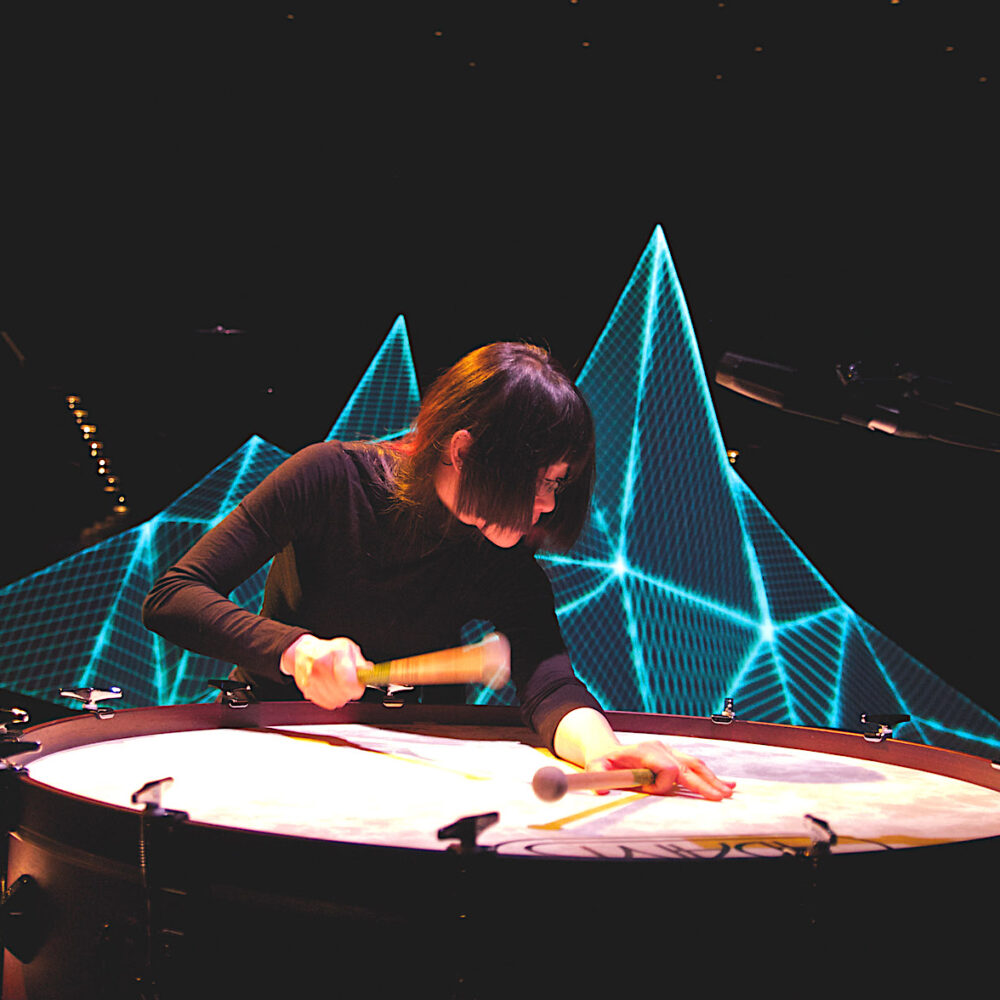En mars 2000, Musiques en scène devient une biennale et sous l’affiche « Lyon Cité sonore », trace un parcours d’installations sonores et visuelles dans l’espace urbain. L’époque est marquée par le développement des interfaces et dispositifs de captation du son par le geste qui fait l’objet d’une intense diffusion nationale et internationale. Avec Thierry de Mey (Musique Light 2004), le corps danse et devient référent de toute pratique artistique. Côté recherche, la mise en pratique du langage Faust conçu par Yann Orlarey a des incidences immédiates sur la création : SmartFaust (Gardez vos smartphones ouverts !) est une symphonie participative pour téléphone de Xavier Garcia, fruit de sa résidence auprès du réalisateur en informatique musicale Christophe Lebreton. Grame se dote d’un pôle interface et expérimental, le « Lab Lutheries & développements », marqueur des synergies Arts/sciences. En témoigne Light wall System, un nouveau dispositif saisissant le geste sans capteur, expérimenté par le percussionniste Jean Geoffroy et Christophe Lebreton.